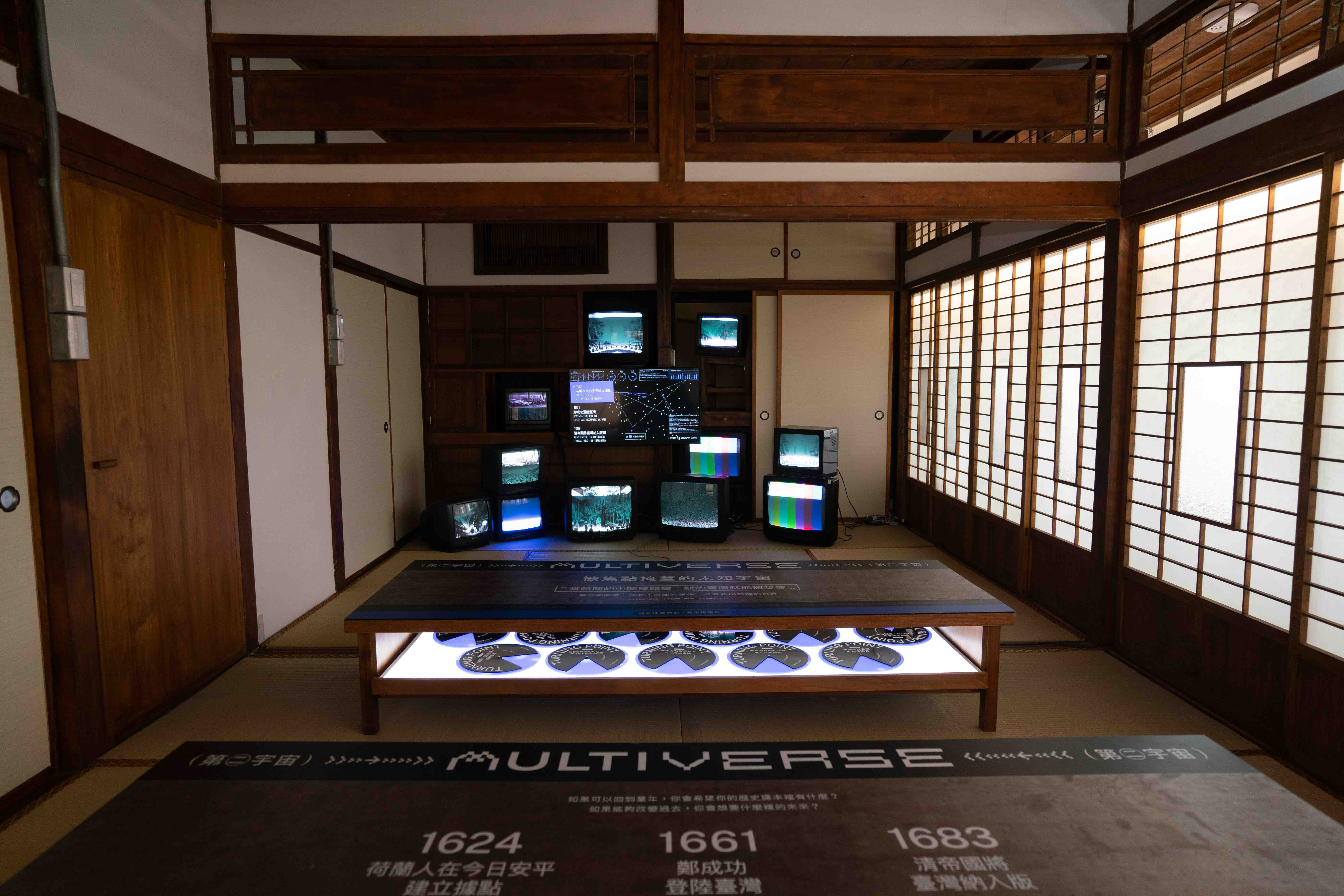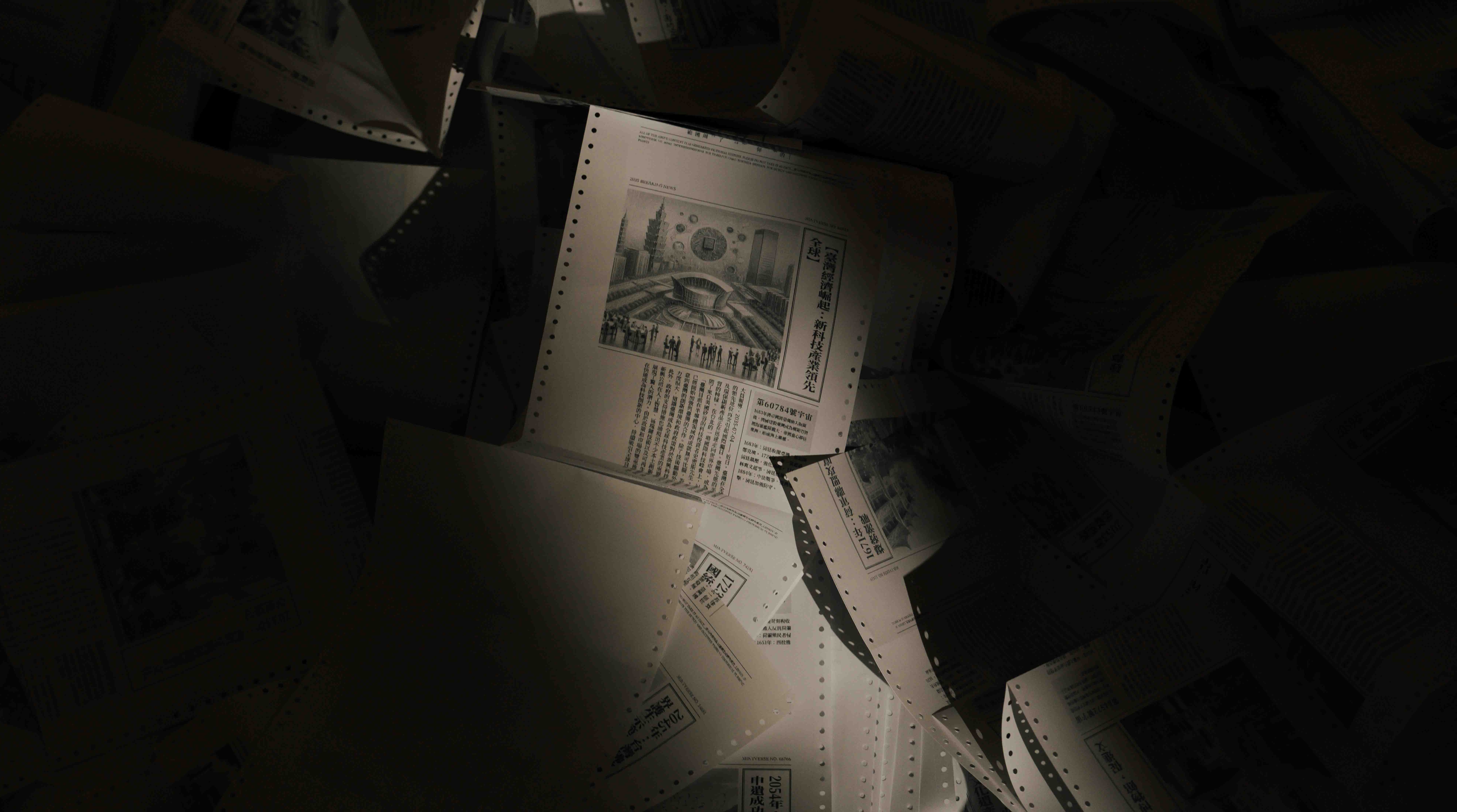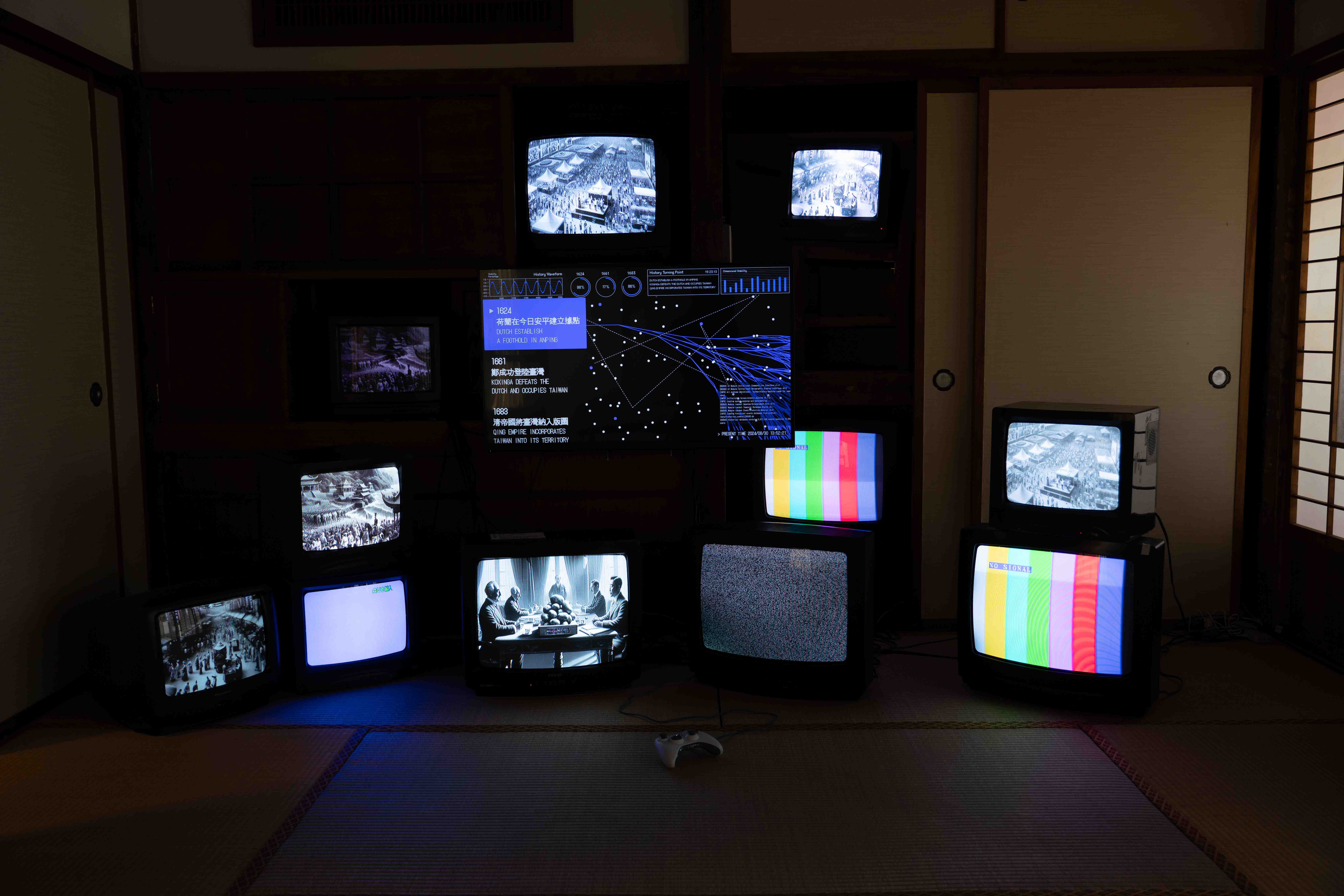 在2024臺灣文化創意博覽會期間,我們在321巷藝術聚落呈現了一個以歷史為主題的裝置藝術作品,其核心理念在於挑戰人們對於歷史發展的一種必然性觀念。歷史的走向並不是理所當然的,過去的每一個關鍵事件都有可能改變我們今天所處的世界。