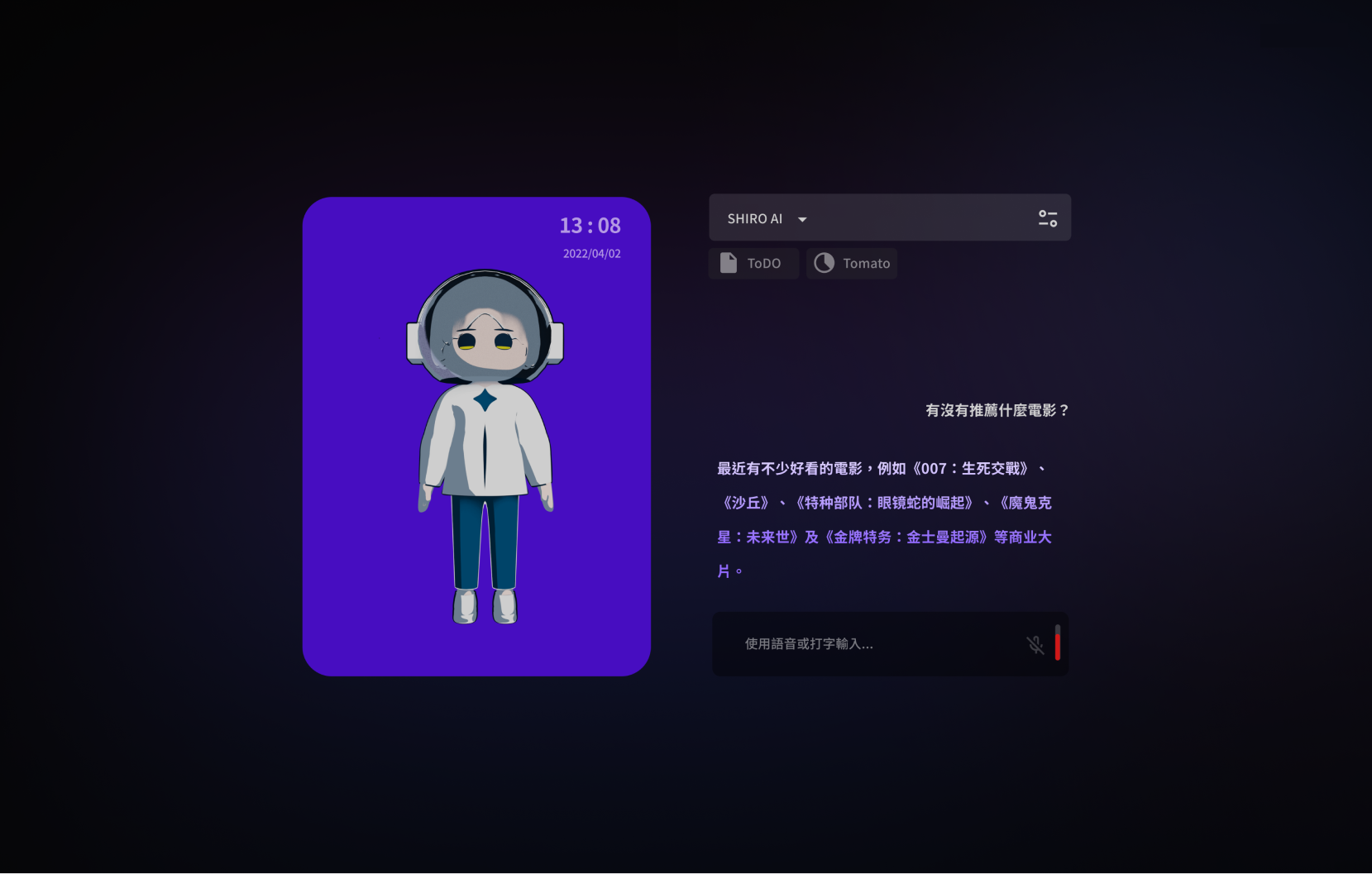 這是一個技術的應用,探索與AI對話的新樣態,試著將人工智慧對話模式融入生活。
