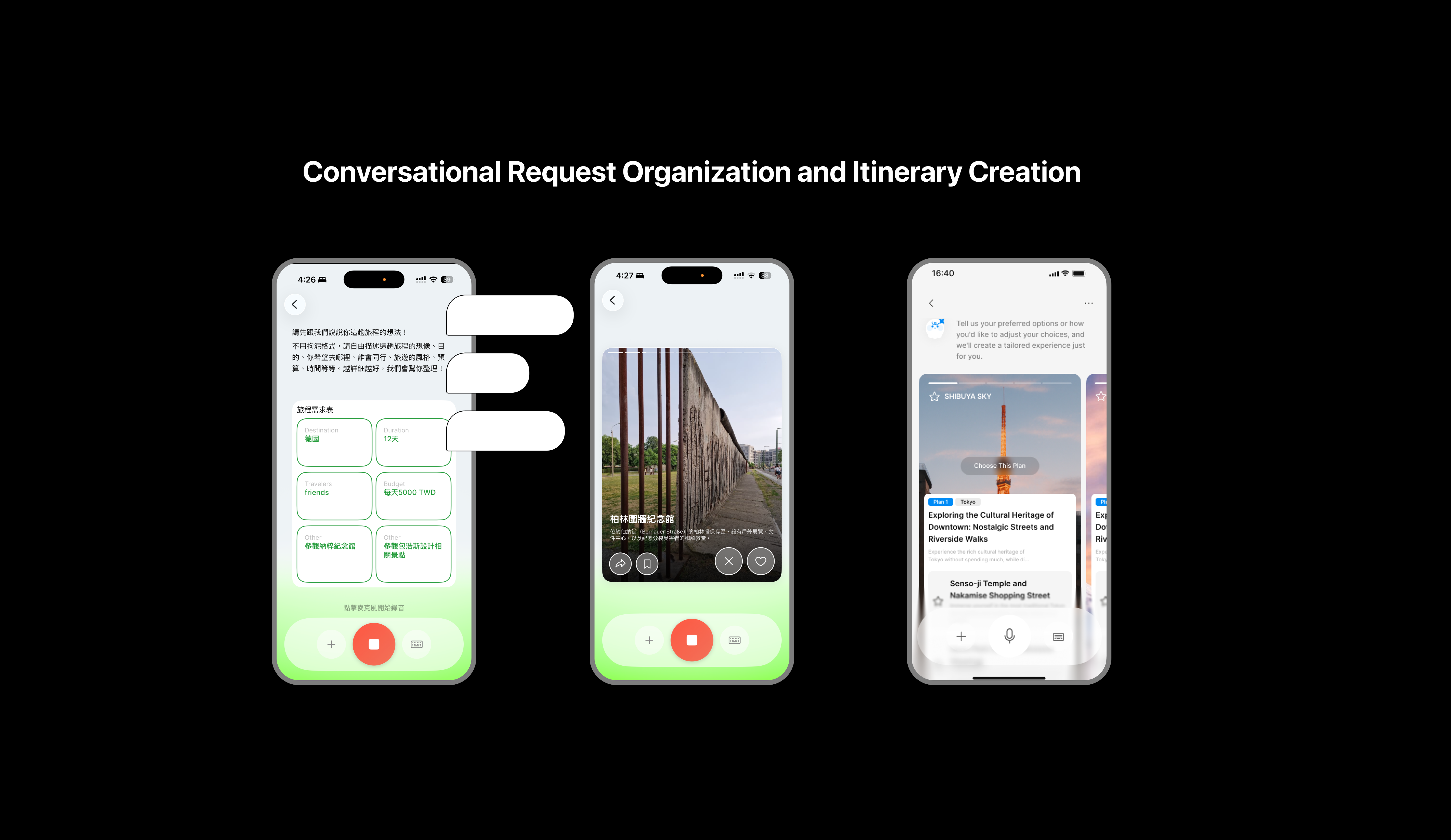 Planning a trip usually means jumping between chat threads, social posts, blogs, Google Maps, hotel sites, airline platforms, and scattered notes. People often have to make decisions before their needs are even fully defined, and once an itinerary is drafted, later tasks such as revisions, collaboration, price comparison, booking, reminders, and on-trip changes are still fragmented across different services. PickTrip starts from that friction. The goal is to turn this broken process into a more coherent experience, where travelers can begin with a natural conversation, gradually clarify what they want, and continue within the same system from planning to execution.