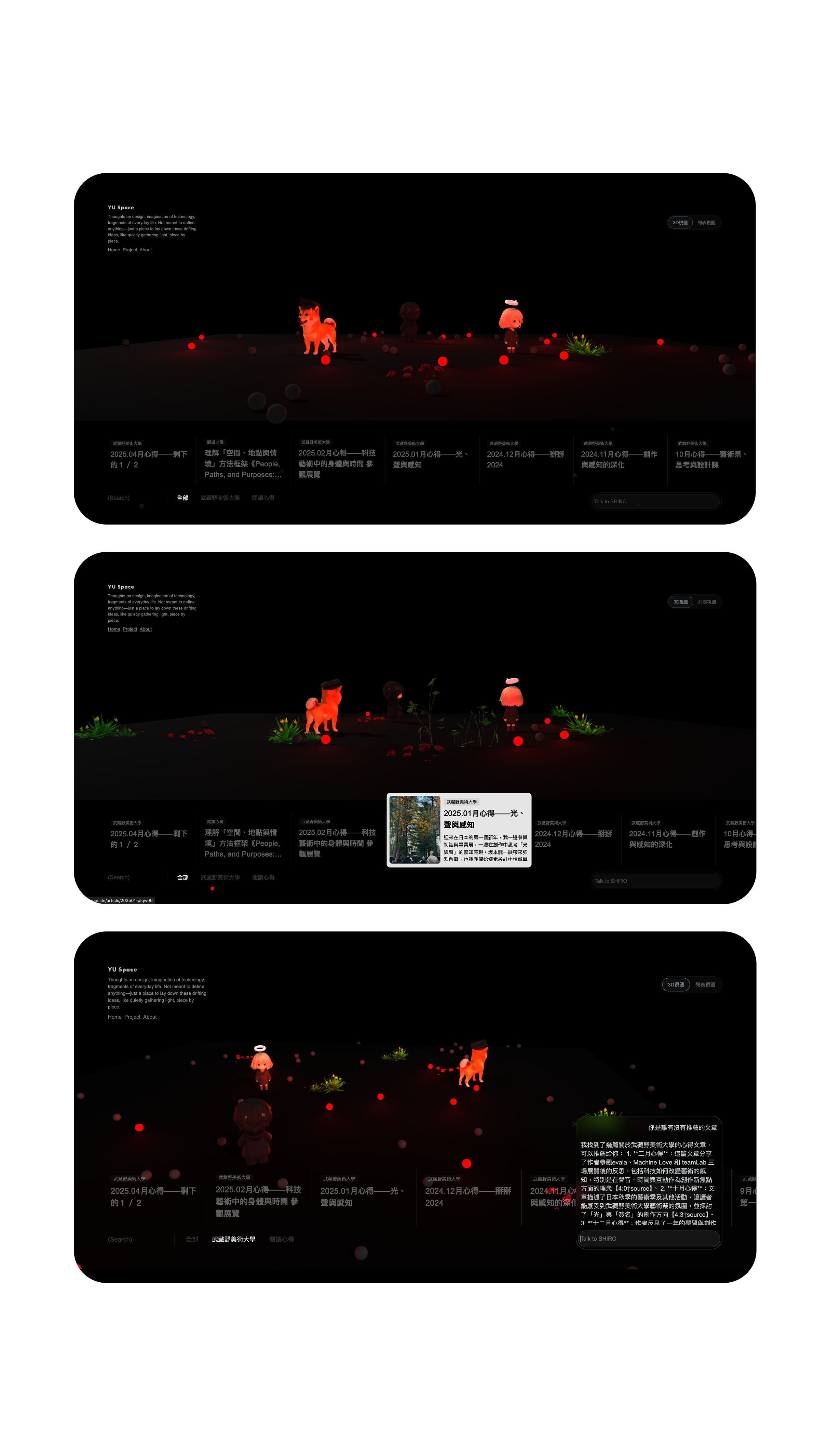 每篇文章完成後,綁定的 AI 角色仍會持續運作,讀者可以透過與角色互動進一步理解內容、提出問題、獲得延伸資訊,讓文章不再是靜止的,而是具備延續性與互動性的知識節點。